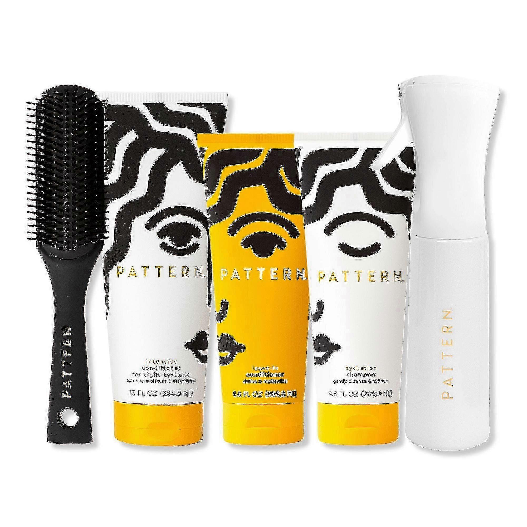 The PATTERN Intensive Conditioner Wash Day Bundle brings together the essentials for an ultra-hydrating, deep-conditioning wash day. Great for tight textures and low porosity hair. Includes Hydration Shampoo (9.8 oz), Intensive Conditioner (13.0 oz), and Leave-In Conditioner (9.8 oz).Benefits Great for tight textures - when your scalp & hair need some extra TLC Brings together the essentials for an ultra-hydrating, indulgent wash day Includes cleanser, conditioners & tools to protect strands against breakage & dryness Formulas & tools work together for easy detangling & great curl definition Perfect for low porosity hair Color-safe Not tested on animals Recyclable packaging PATTERN products help support organizations & programs that empower women & people of color Includes Hydration Shampoo (9.8 oz) Intensive Conditioner (13.0 oz) Leave-In Conditioner (9.8 oz) Shower Brush Mist Spray Bottle (10.0 oz) Active Ingredients: Hydration Shampoo: Aqua (Water, Eau), Sodium C14-16 Olefin Sulfonate, Cocamidopropyl Betaine, Propanediol, Glycol Distearate, Argania Spinosa Kernel Oil, Cocos Nucifera (Coconut) Oil, Mel (Honey, Miel), Melaleuca Alternifolia (Tea Tree) Leaf Oil, Olea Europaea (Olive) Fruit Oil, Biotin, Persea Gratissima (Avocado) Oil, Ricinus Communis (Castor) Seed Oil, Simmondsia Chinensis (Jojoba) Seed Oil, Butyrospermum Parkii (Shea) Butter, Aloe Barbadensis Leaf Juice, Prunus Amygdalus Dulcis (Sweet Almond) Oil, Glycine Soja (Soybean) Oil, Glycine Soja (Soybean) Sterols, Glycolipids, Glycerin, Phospholipids, Amodimethicone, Guar Hydroxypropyltrimonium Chloride, Hydroxyethylcellulose, Lauryl Lactyl Lactate, Hydroxyacetophenone, PEG-150 Distearate, Parfum (Fragrance), Hydrolyzed Vegetable Protein PG-Propyl Silanetriol, Celluose, Phenoxyethanol, Citric Acid, PEG-150 Stearate, Disodium EDTA, PEG-1M, Stearic Acid, Sodium Hydroxide, Sodium Acetate, Potassium Sorbate, Sodium Benzoate, Linalool. Intensive Conditioner: Aqua (Water, Eau), Cetearyl Alcohol, Stearic Acid, Persea Gratissima (Avocado) Oil, Butyrospermum Parkii (Shea) Butter, PEG-8 Beeswax, Glycerin, Ethylhexyl Palmitate, Carthamus Tinctorius (Safflower) Seed Oil, Behentrimonium Methosulfate, Jojoba Esters, Cetyl Alcohol, Helianthus Annuus (Sunflower) Seed Wax, Tocopherol, Glycine Soja (Soybean) Oil, Polyglycerin-3, Acacia Decurrens Flower Wax, Polyquaternium-37, Polyquaternium-10, Ethylhexylglycerin, Parfum (Fragrance), Isopropyl Alcohol, Sodium Chloride, Sodium Acetate, Phenoxyethanol, Benzyl Benzoate.