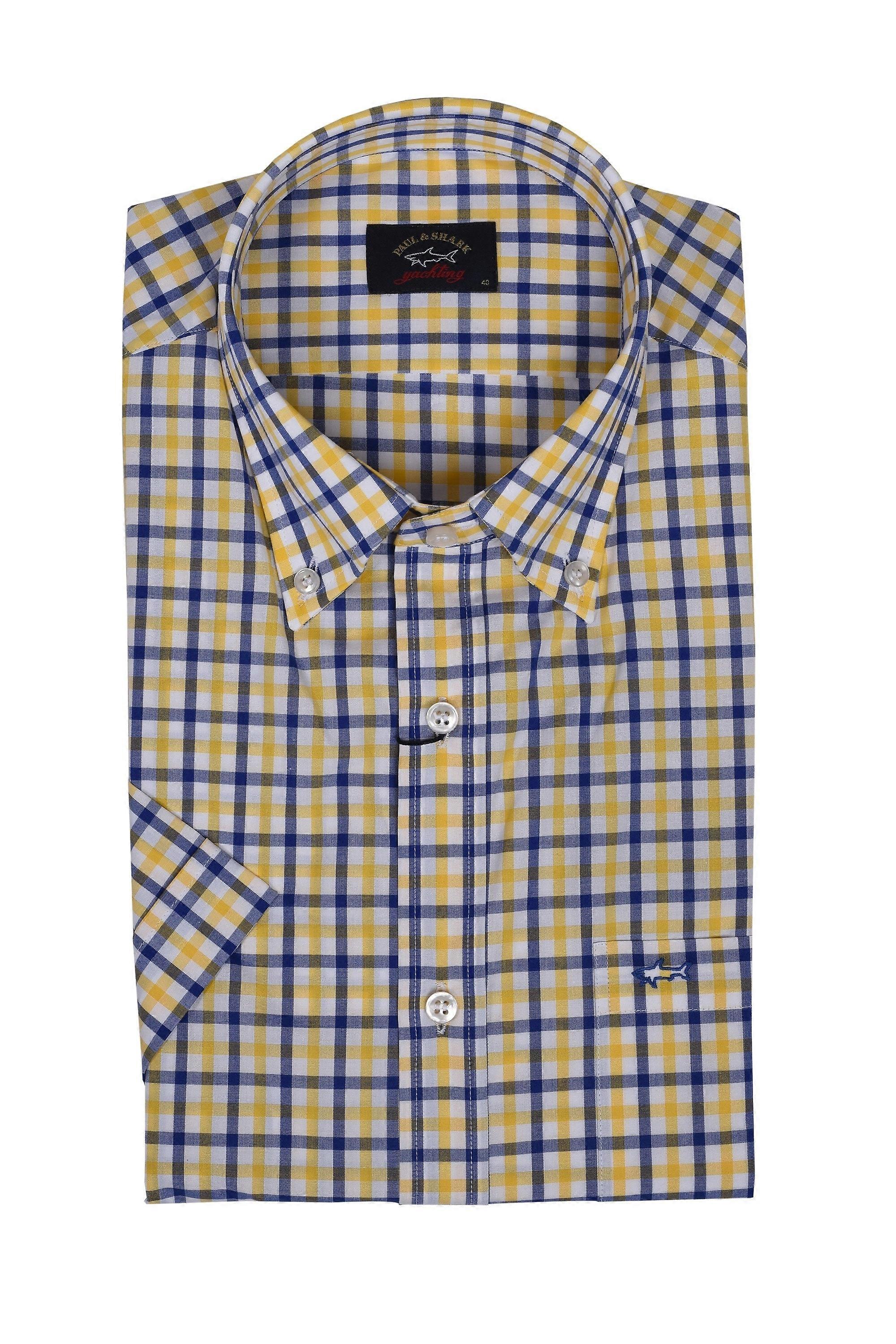 Paul And Shark Short Sleeved Cotton Shirt Yellow/blue Check