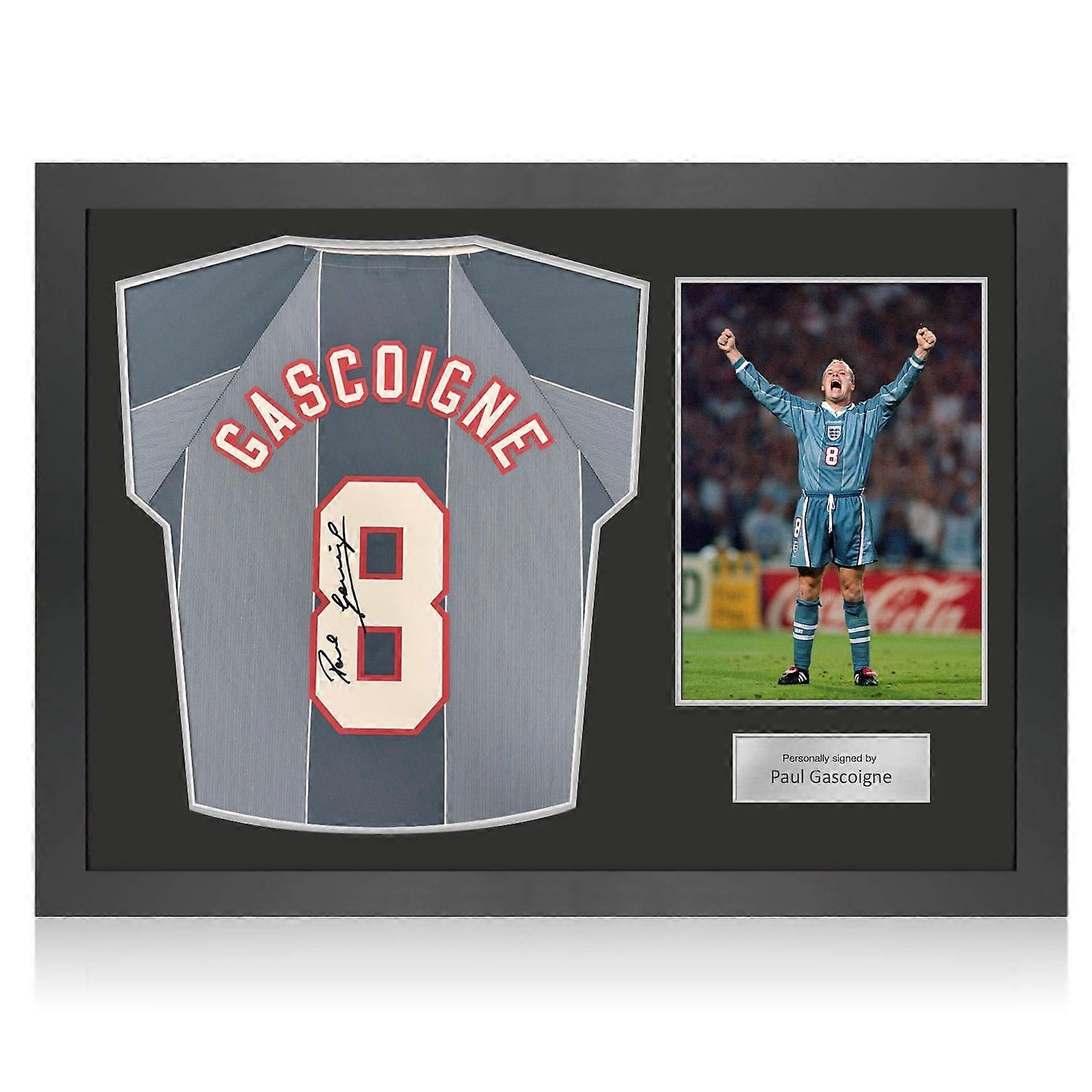 Paul Gascoigne Signed England 1996 Away Football Shirt. Icon Frame