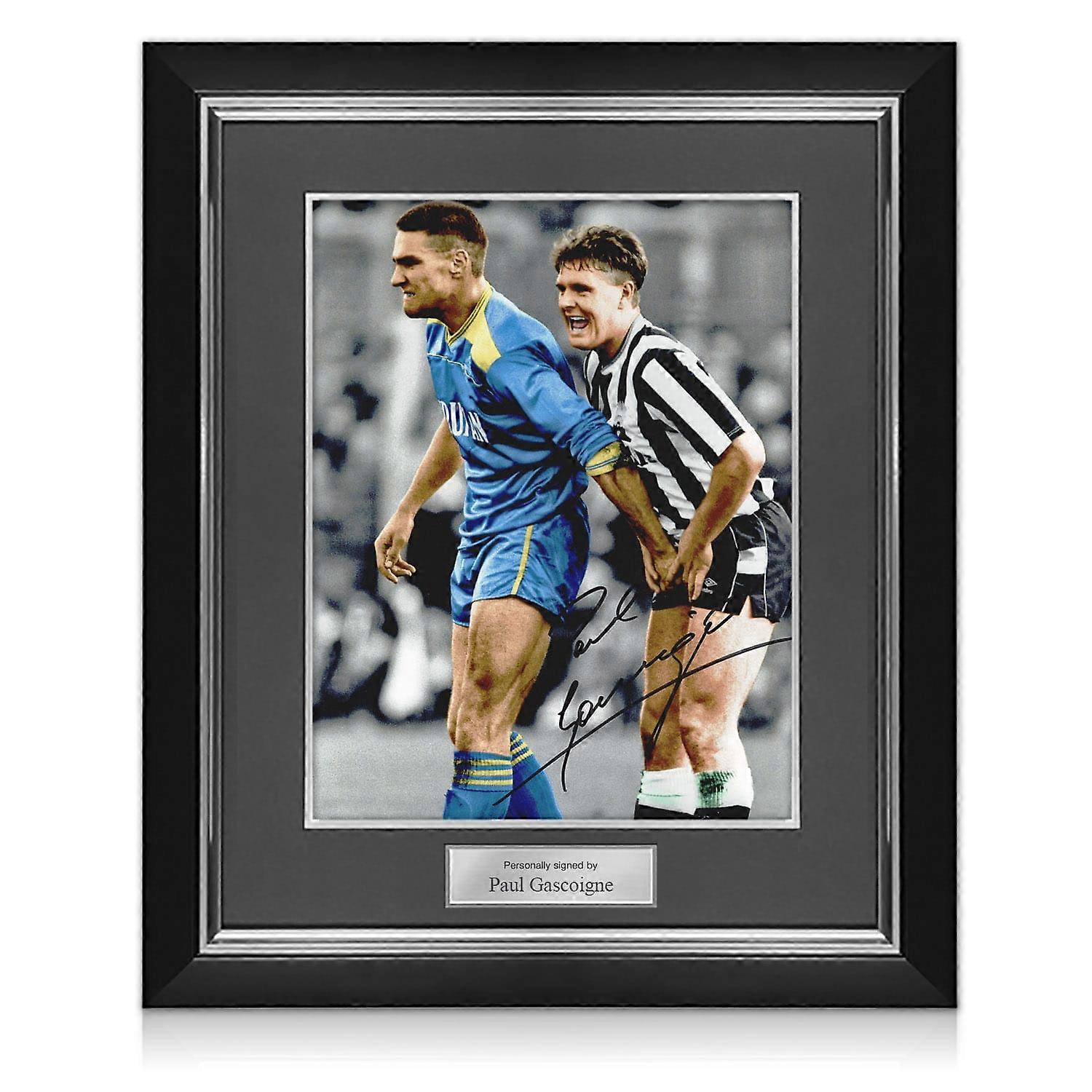 Paul Gascoigne Signed Newcastle United Football Photo: With Vinnie Jones. Deluxe Frame