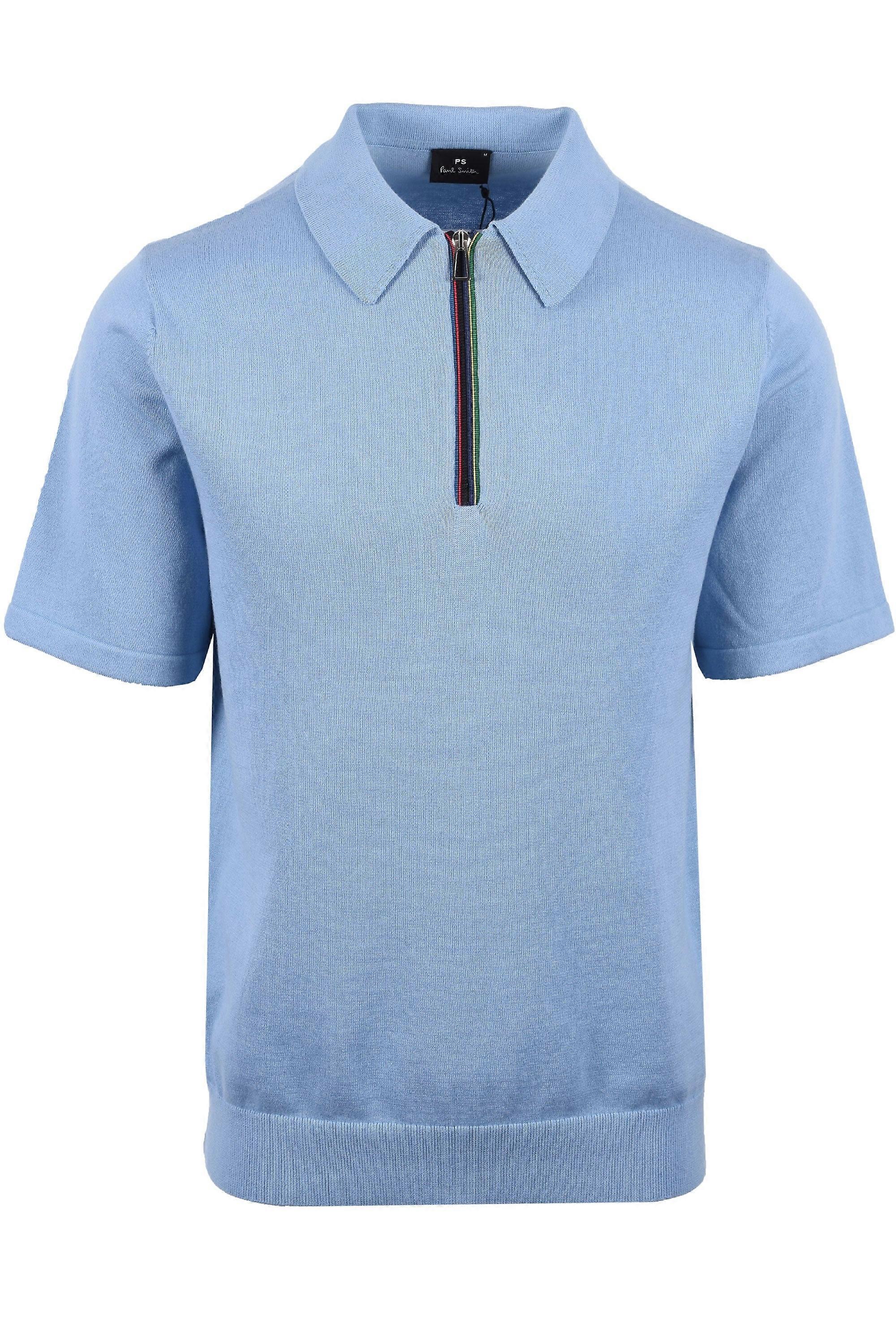 Paul Smith Zip Neck Knitted Polo Light Blue