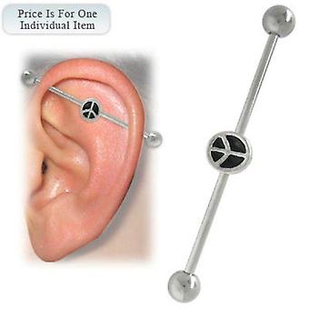 Peace sign surgical steel industrial barbell