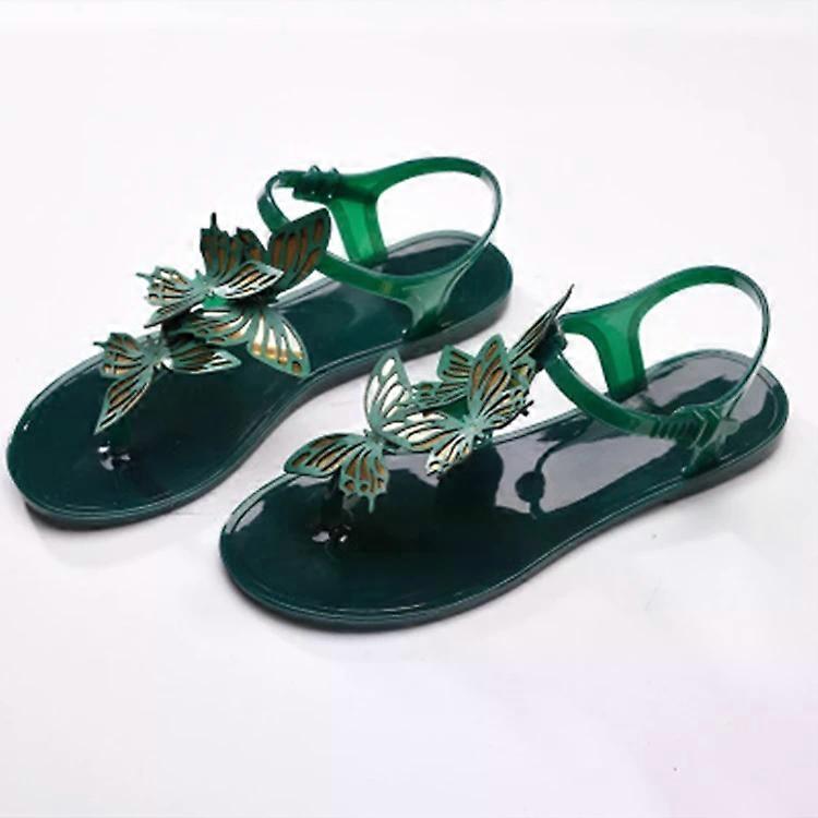 Peep Toe Jelly Flip Flops-Summer Butterfly Design,Green 37 by Green,37