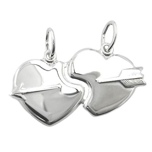 Anhänger 30x16mm Doppelanhänger 2 Herzen mit Pfeil glänzend Silber 925