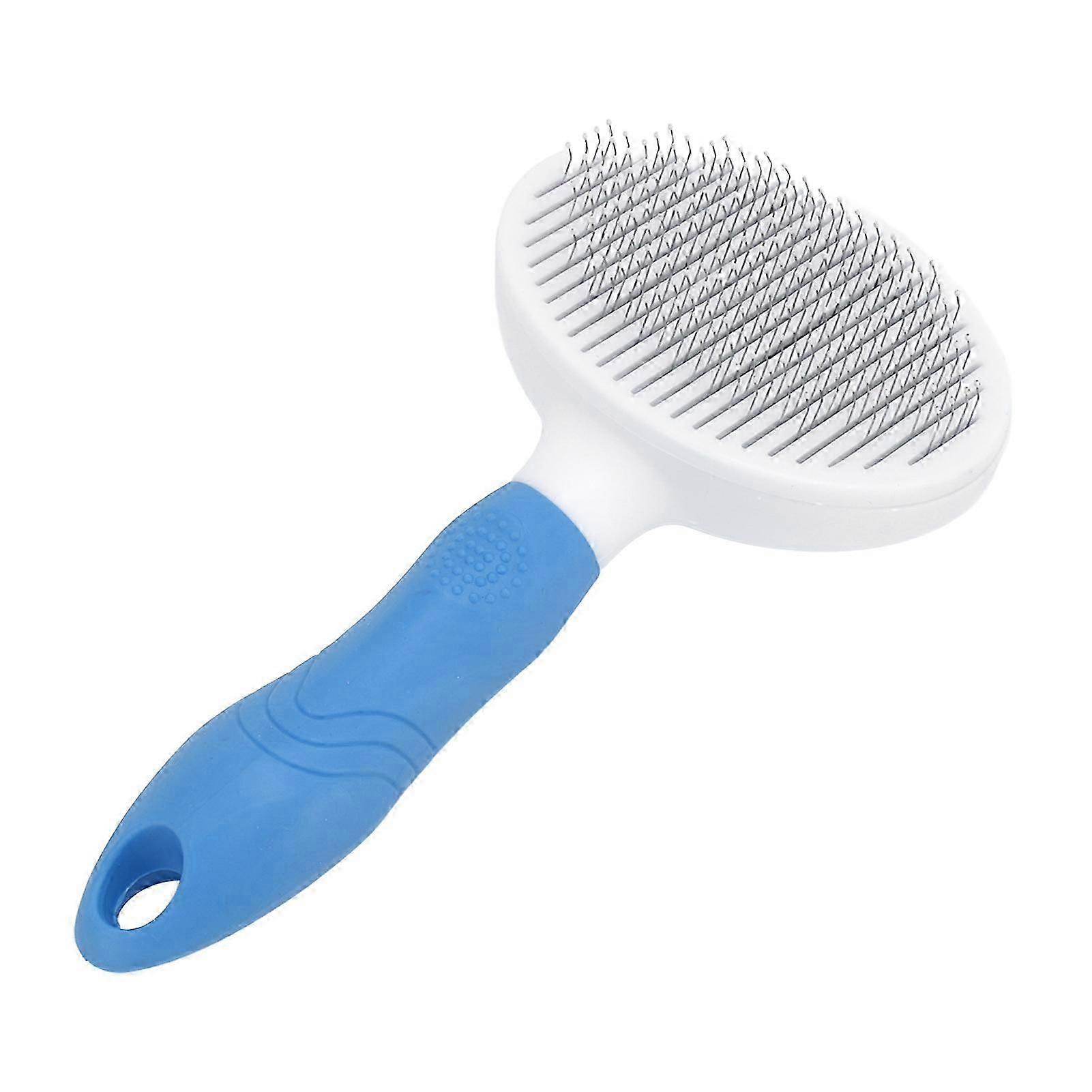 Pet Hair Brush Self Cleaning Massage Painless Round Needle Cat Dog Grooming Slicker BrushBlue