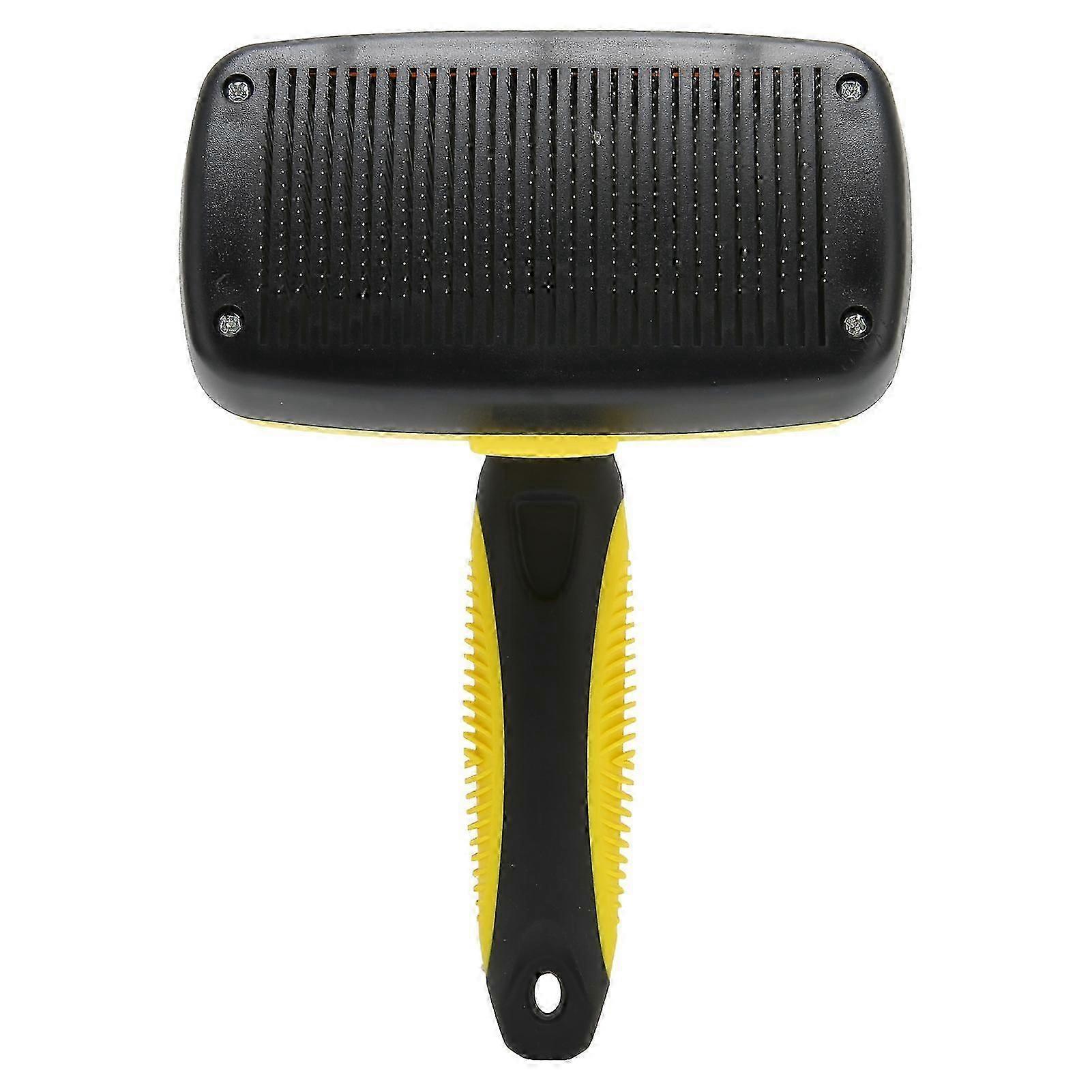 1Hair Removal Tool: Dog slicker grooming brush features a non irritating high quality stainless steel edge with evenly distributed teeth for quick and easy removal of loose hair. 2Self Cleaning: The pet hair shedding brush has a self cleaning button, press the button after use, watch the bristles retract, and the hair will fall off immediately. Suitable for short, medium and long haired cats or dogs. 3Massage Function: Pet grooming brush effectively combs the deeper fur and stimulates the blood circulation of the skin. Unique polished comb teeth, safe and does not hurt the skin. 4Professional: Pet hair removal grooming comb removes knots, dander and loose hair from fur, reducing hair loss by up to 90 percent, reducing hair straying on the bed or car. 5Safe And Harmless: Dog hair removal brush is environmentally friendly, non toxic, non polluting, and safe to use. Easy to use, allows you to groom your pets at home. Save money and time. 6Ergonomic Design: The pet hair shedding comb has an ergonomic handle, non slip, suitable for both hands, sturdy and durable. Stainless steel teeth are passivated for safety and long service life. Item Type: Pet Slicker Hair Brush Material: ABS, Stainless Steel Needle Color: Yellow Black 1 xPet Slicker Hair Brush