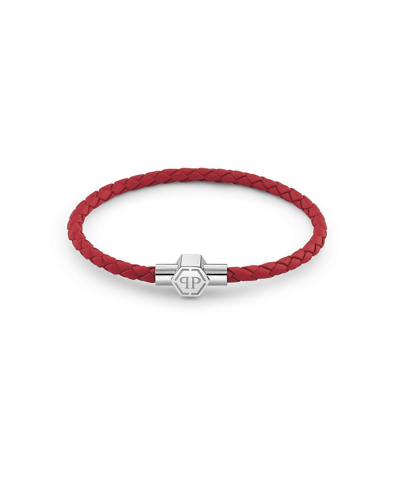 Philipp Plein Herren Armband Edelstahl silber Leder rot PLEIN TAG PJ0AA21BS