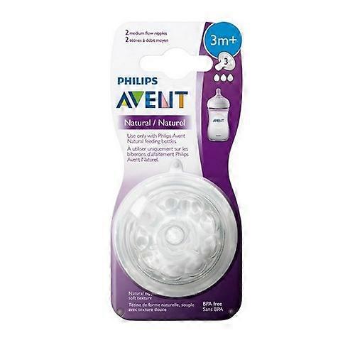 Philips Avent Natural Baby Bottle Nipple Medium Flow 3 Months Plus, 2 Count / 1 Pack