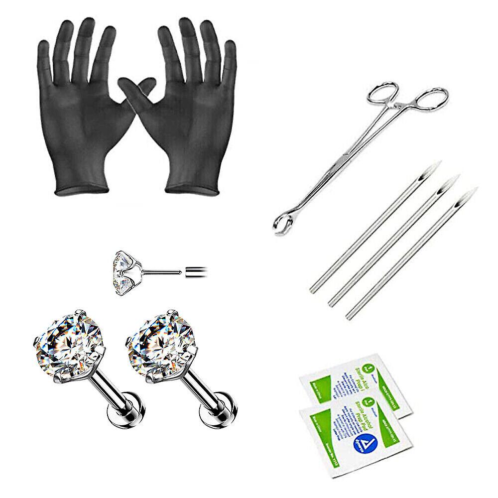 Piercing kit 10 pc threadless flat back titanium jewelry 2mm cz jewel