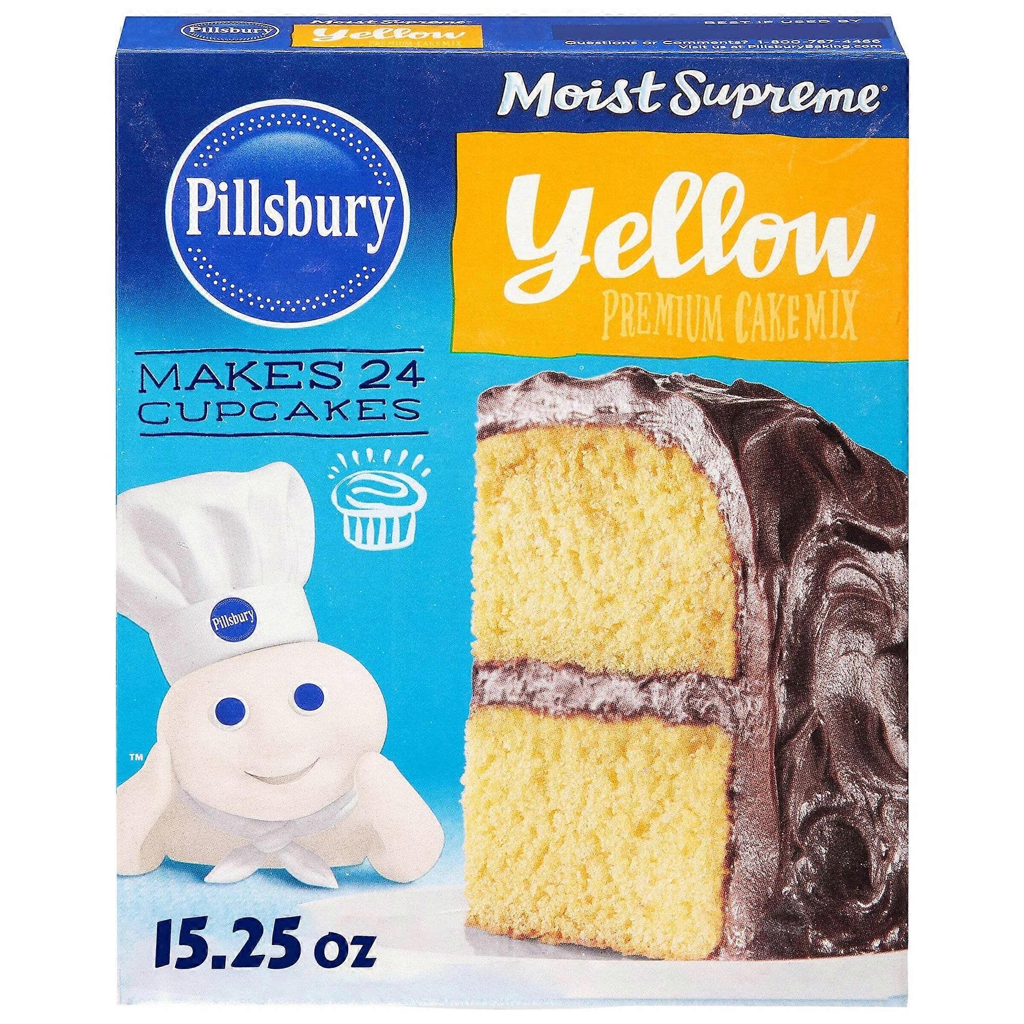 Pillsbury Moist Supreme Premium Yellow Cake Mix gives the classic taste of yellow cake with a moist texture and easy-to-follow instructions. The yellow cake mix contains all the dry ingredients you need to create delicious desserts at home in just three steps. Simply add wet ingredients to the baking mix, stir to combine and bake. This boxed cake mix makes enough batter for a 13 by 9 inch cake, two 8 inch round cakes, a standard Bundt cake or 24 cupcakes. Use this dessert mix to make a birthday cake, cupcakes or desserts to make any occasion special.