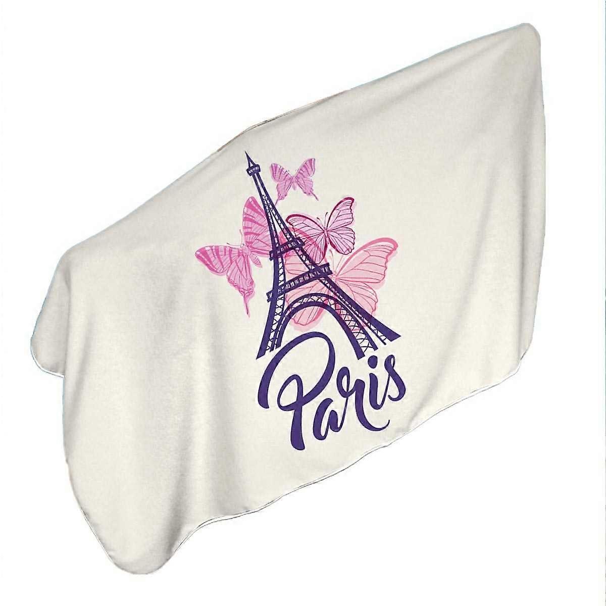 Pink Butterflies and Paris Eiffel Tower Microfiber Beach Towel