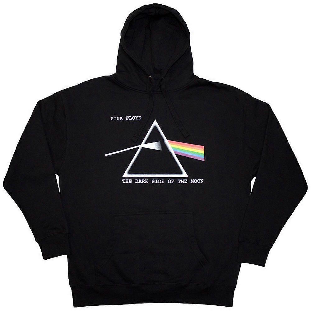 Official licensed Pink Floyd Unisex Pullover Hoodie featuring the 'Dark Side of the Moon Courier' design motif. High quality black unisex pullover hoodie featuring front printed design motif. With drawstring hood and kangaroo style pouch pockets. Comes in a wide range of sizes from Small through XX-Large, subject to availability.