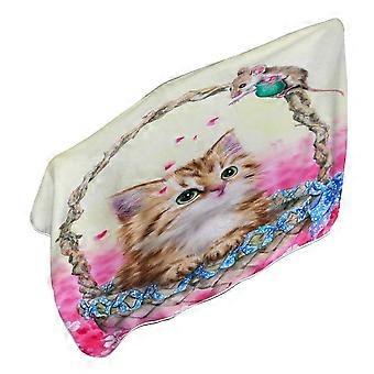 Pink Garden and Ginger Kitty Cat in a Basket Microfiber Beach Towel
