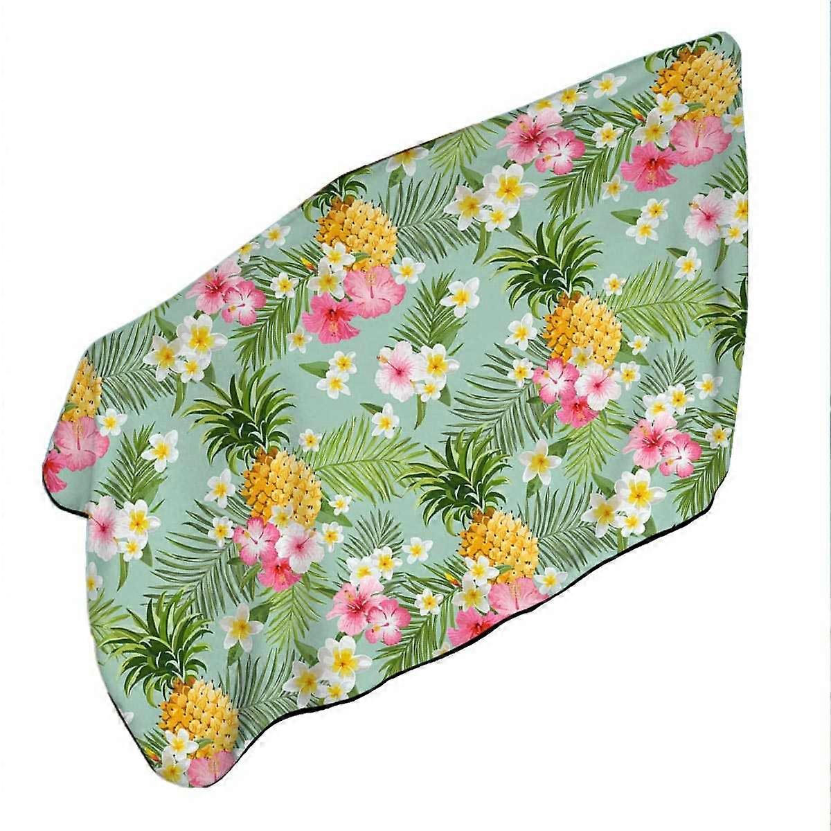 Pink Hibiscus White Plumeria and Pineapple Microfiber Beach Towel