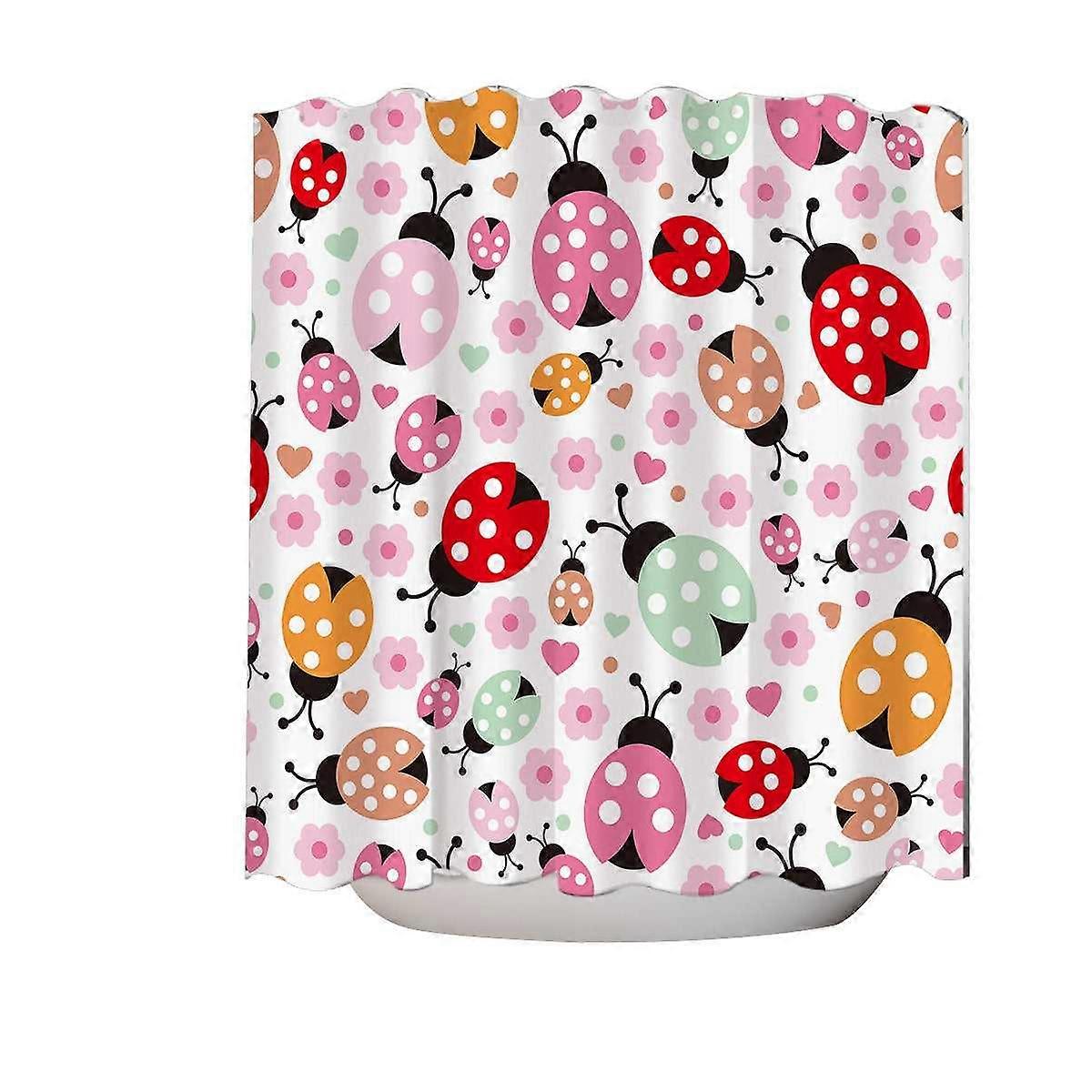 Pink Little Flowers and Ladybugs Shower Curtain