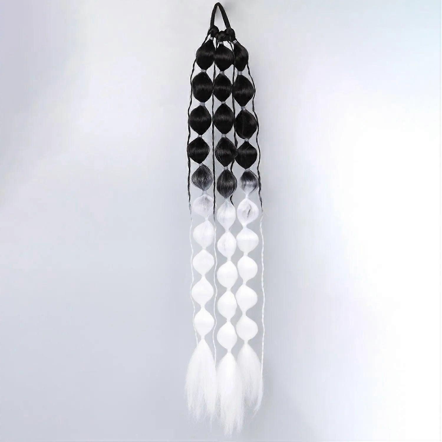 Pink Synthetic Hair Wig Ponytail Extension - Long Bubble Braid Kinky Straight &