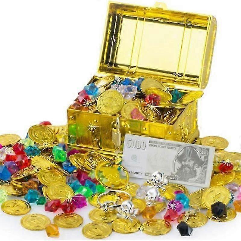 Pirate Treasure Chest Box with 100pcs Pirate Gold 100gDiamondKids Toys Halloween Party Decoration Game