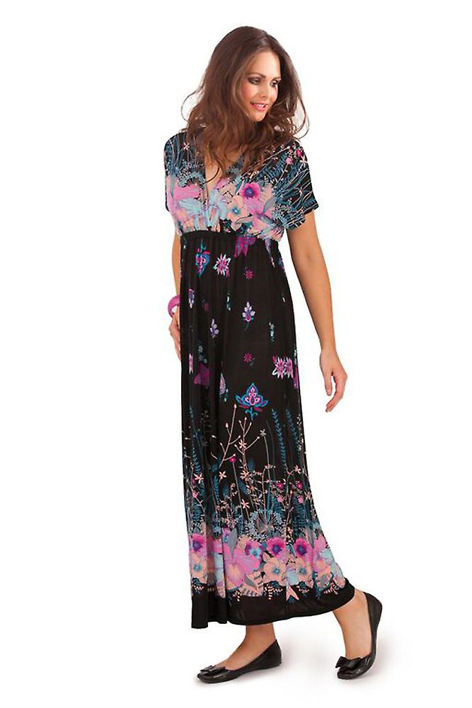 Pistachio Black Floral Print Maxi Dress D461 Purple & Blue V Neck & Back