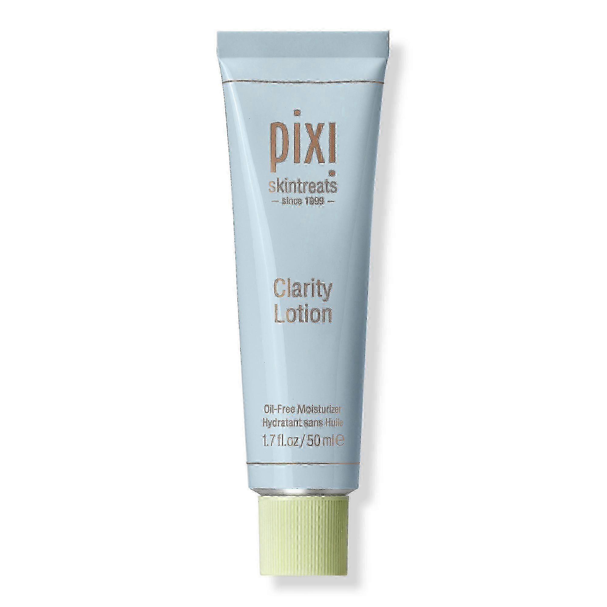 PIXI Clarity Lotion is a light-textured, water-based, oil-free formula that reduces the appearance of pores and absorbs oil for matte and shine-free skin.