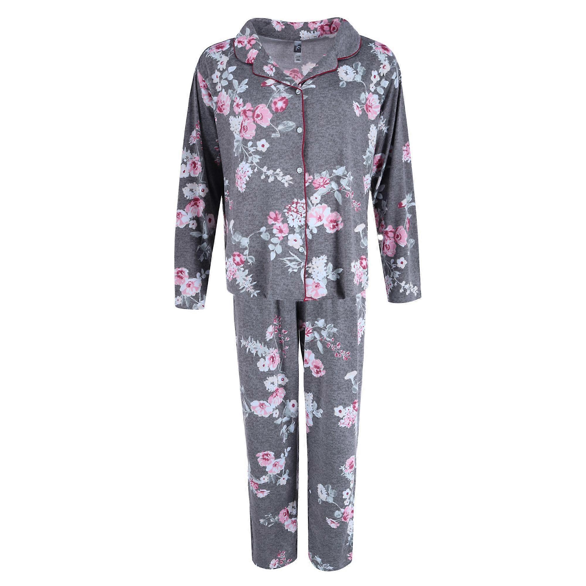 PJ Couture Floral Print Notch Pajama Set (Women's Plus)