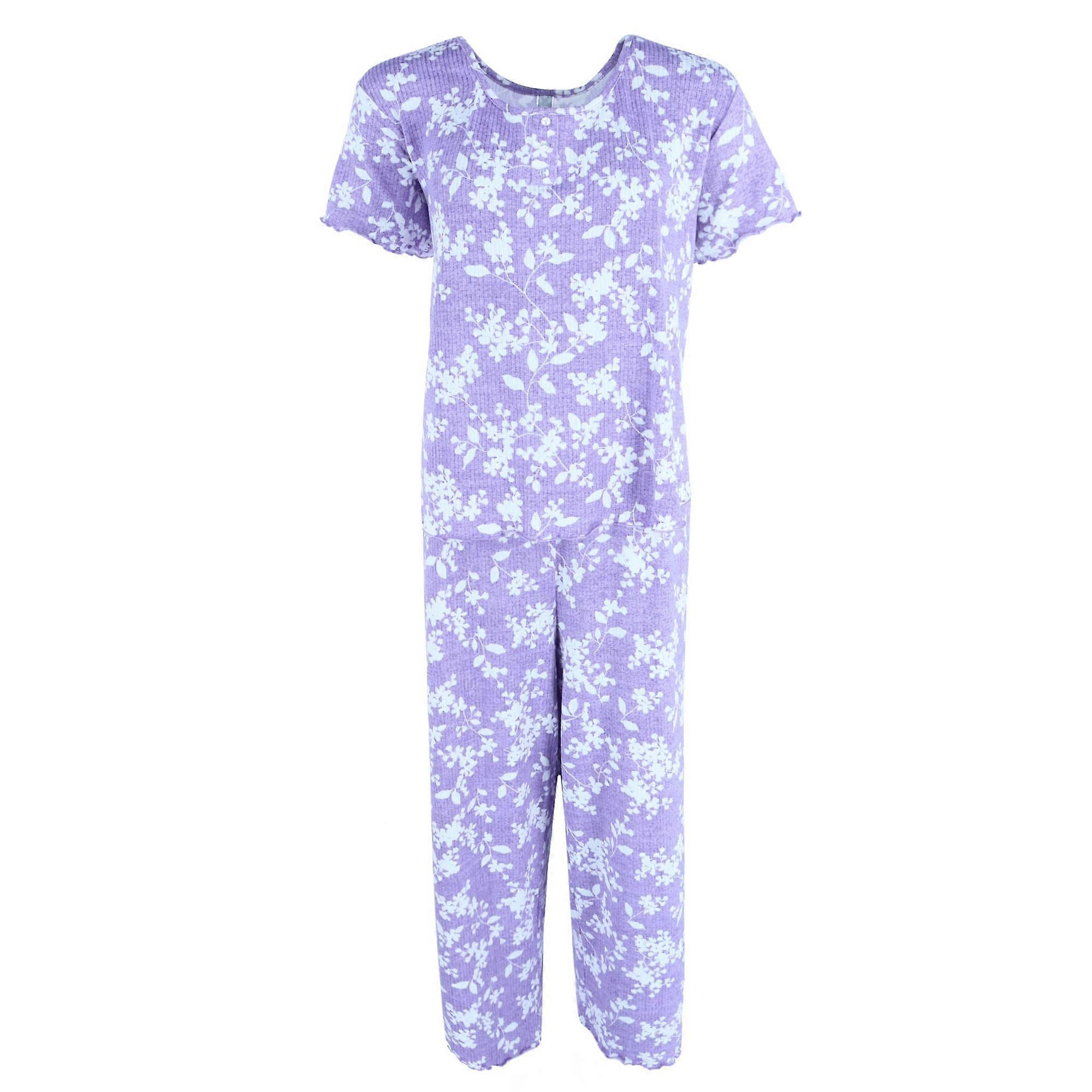 PJ Couture Lightweight Ribbed Tropical Print Pajama Set (Women's Plus)