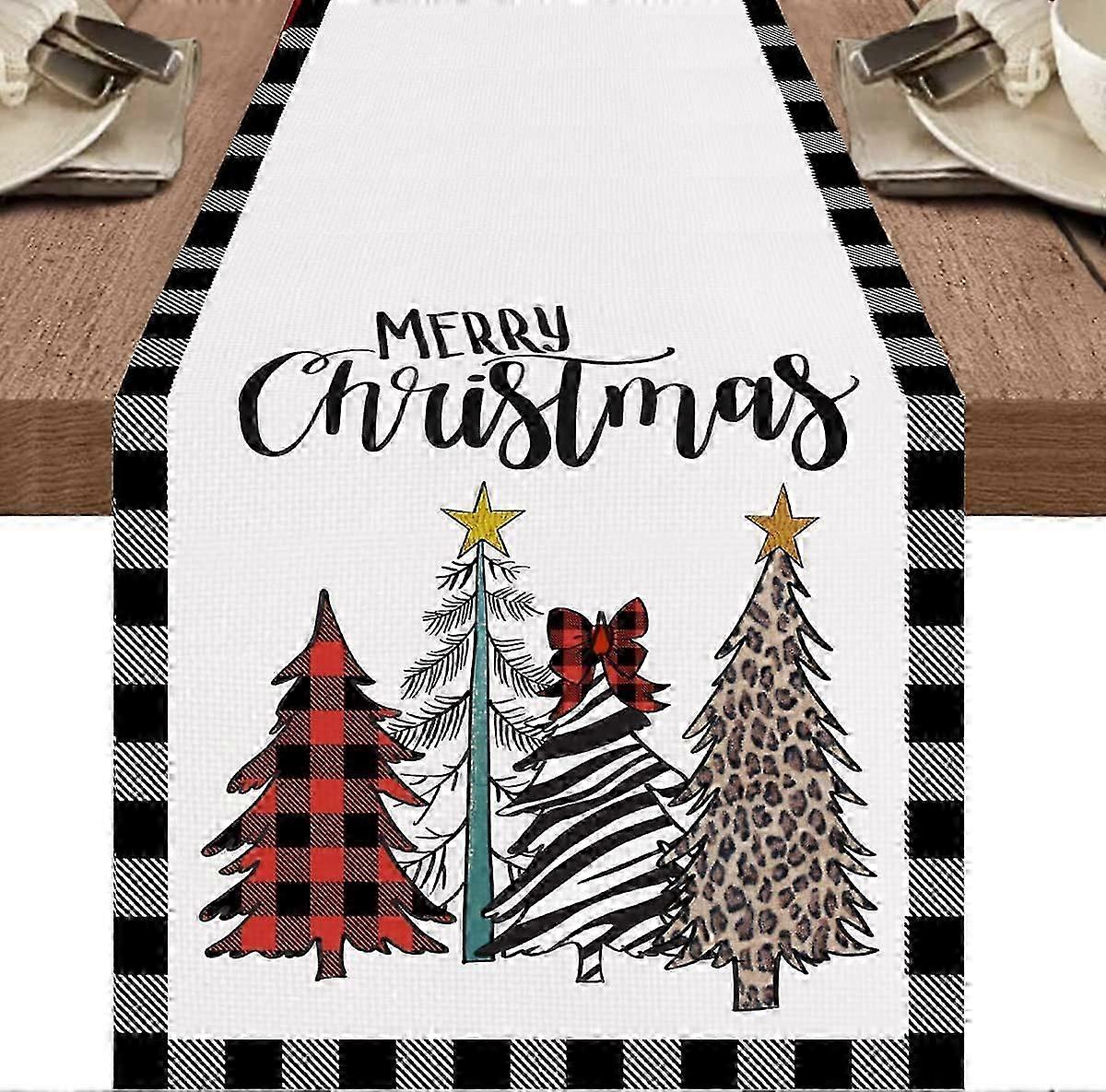 Plaid Christmas Trees Merry Xmas Table Runner, Seasonal Winter Holiday Kitchen Dining Table Decoration for Indoor Outdoor Home Party Decor 13 x 72 Inc