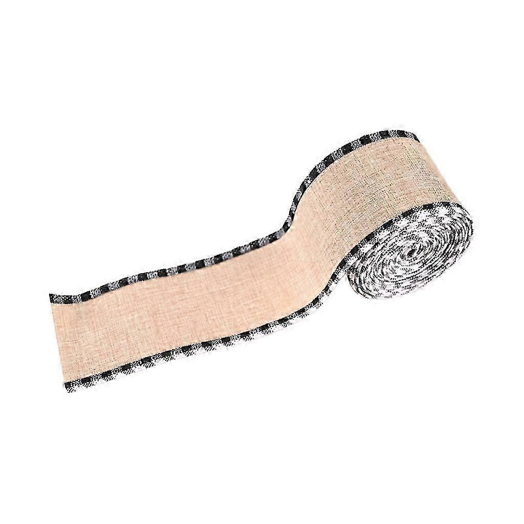 Plaid Wired Edge Ribbons Christmas Burlap Fabric Craft Natural Wrapping Ribbon
