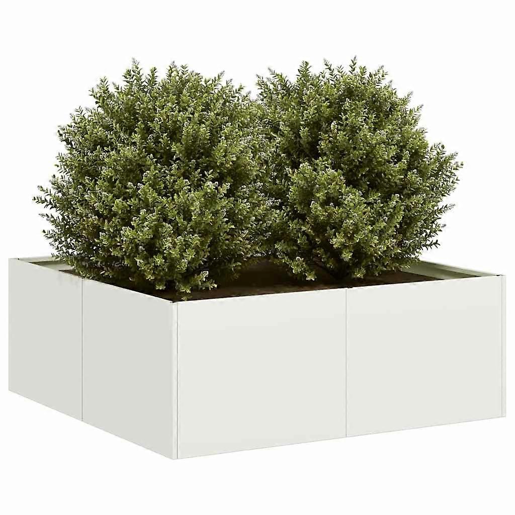 Verschönere deinen Außenbereich mit diesem stilvollen Pflanzgefäß, das sich perfekt für Gärten, Balkone und Terrassen eignet. Langlebiges Material: Kaltgewalzter Stahl ist eine Art kohlenstoffarmer Stahl, der im „Kaltwalzverfahren“ hergestellt und bei nahezu normalen Raumtemperaturen verarbeitet wird. Kaltgewalzter Stahl besitzt eine glattere Oberfläche, eine höhere Festigkeit und lässt sich präziser verarbeiten.Viel Platz: Das tiefe und breite Hochbeet bietet viel Platz für Erde und damit eine ideale Wachstumsumgebung für Pflanzen, Gemüse, Kräuter und Blumen. Seine großzügige Größe ermöglicht vielseitige Bepflanzungsoptionen, die perfekt für jeden Garten oder Außenbereich sind.Erhöhte Stabilität: Ausgestattet mit innenliegenden Stützbügeln sorgt dieser Blumenkasten für zuverlässige Robustheit und Stabilität. Die verstärkte Konstruktion hält die Struktur sicher, auch wenn sie mit Erde gefüllt ist, und bietet eine lange Haltbarkeit für deine Gartenarbeit.Dekorativer Reiz: Dieser Pflanzkasten ist so gestaltet, dass er Ihre Lieblingspflanzen oder -blumen in Szene setzt und Ihrem Garten oder Ihrer Terrasse gleichzeitig eine stilvolle Note verleiht. Seine moderne Ästhetik und sein natürliches Finish machen ihn zu einem herausragenden Dekorationselement, das sich nahtlos in die Außendekoration einfügt.Offenes Bodendesign: Der offene Boden des Pflanzgefäßes ermöglicht einen effizienten Abfluss von überschüssigem Wasser und verhindert Staunässe. Das Design fördert außerdem ein gesundes Pflanzenwachstum, da sich die Wurzeln frei in den Boden ausbreiten können, um die Nährstoffaufnahme zu verbessern. Gut zu wissen:Dieses Pflanzgefäß enthält keinen Boden. Farbe: WeißMaterial: Kaltgewalzter StahlGesamtabmessungen: 80 x 80 x 30 cm (B x T x H)Art des Bodens: Offener BodenZusammenbau erforderlich: Ja
