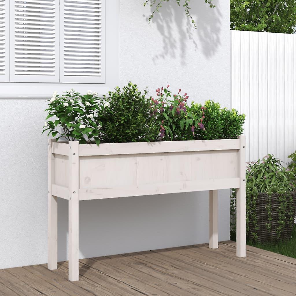 Pflanzkübel mit Beinen Weiß 110x31x70 cm Massivholz Kiefer
