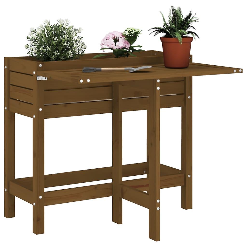 Pflanzkasten mit Klappbarer Tischplatte Honigbraun Massivholz