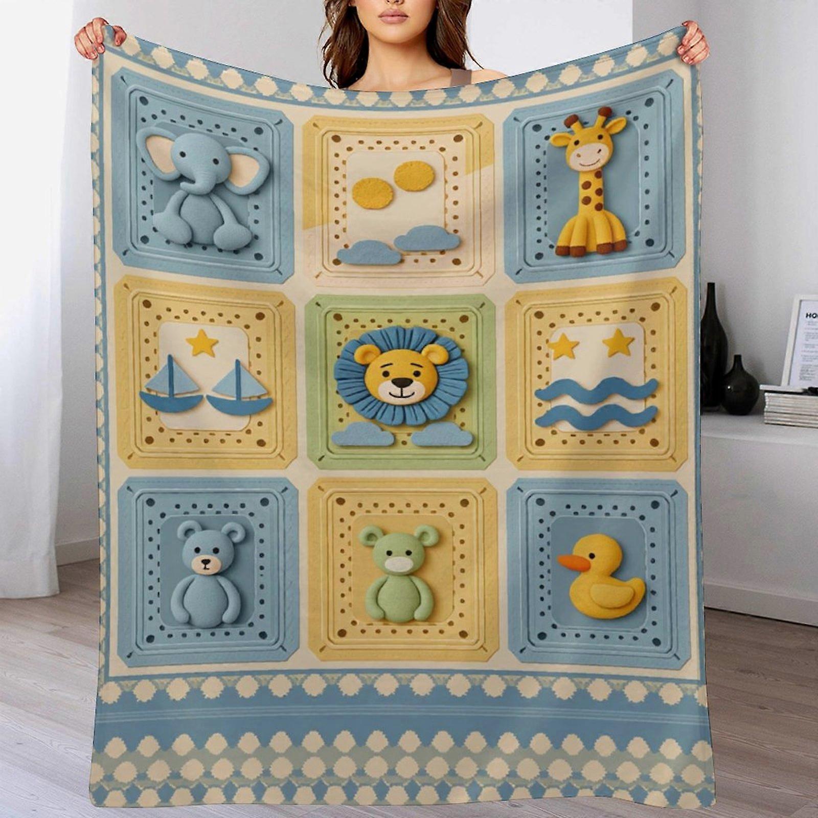Playful Animal Patchwork (3D Style) Graphic Print Flannel Blanket - Soft Warm Throw, 50x60 Inch, Baby/Kid Room Decor (Nursery/Crib)