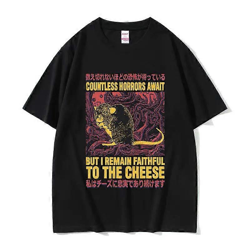 Playful Cheese Devouring Machine Japanese Rat Graphic TShirts Men Retro Fashion Oversized T-shirt Y2k Unisex Streetwear
