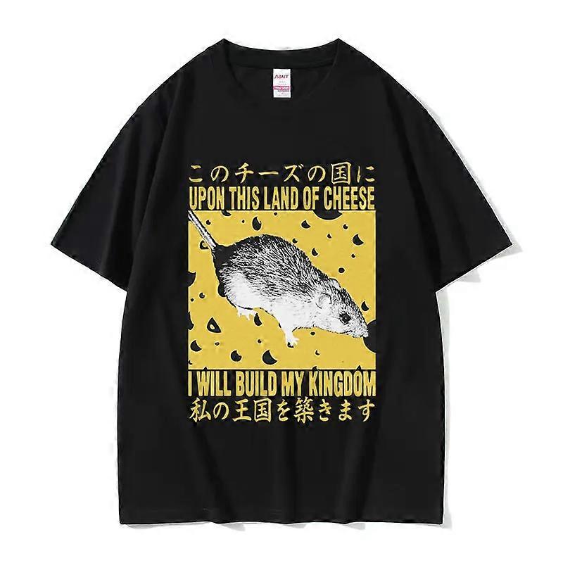 Playful Cheese Devouring Machine Japanese Rat Graphic TShirts Men Retro Fashion Oversized T-shirt Y2k Unisex Streetwear