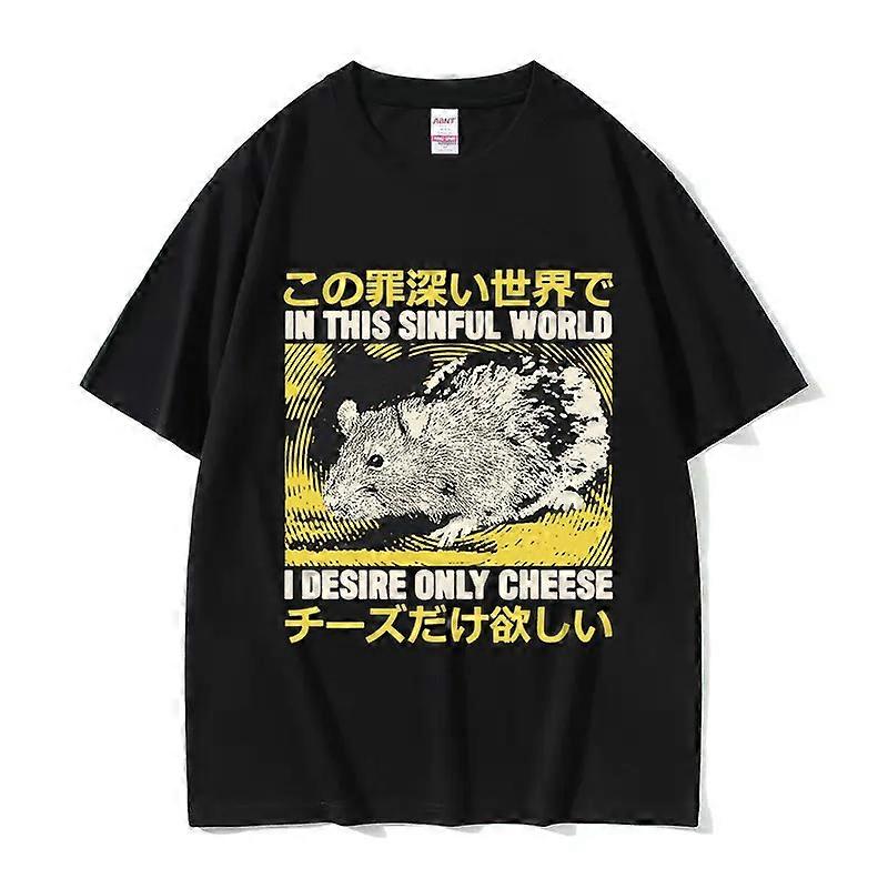 Playful Cheese Devouring Machine Japanese Rat Graphic TShirts Men Retro Fashion Oversized T-shirt Y2k Unisex Streetwear