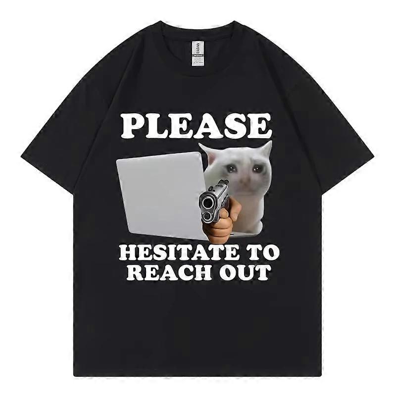 Please Hesitate To Reach Out Funny Cat Meme Graphic T Shirts High Quality Fashion T-shirt Unisex Casual Loose T-shirts