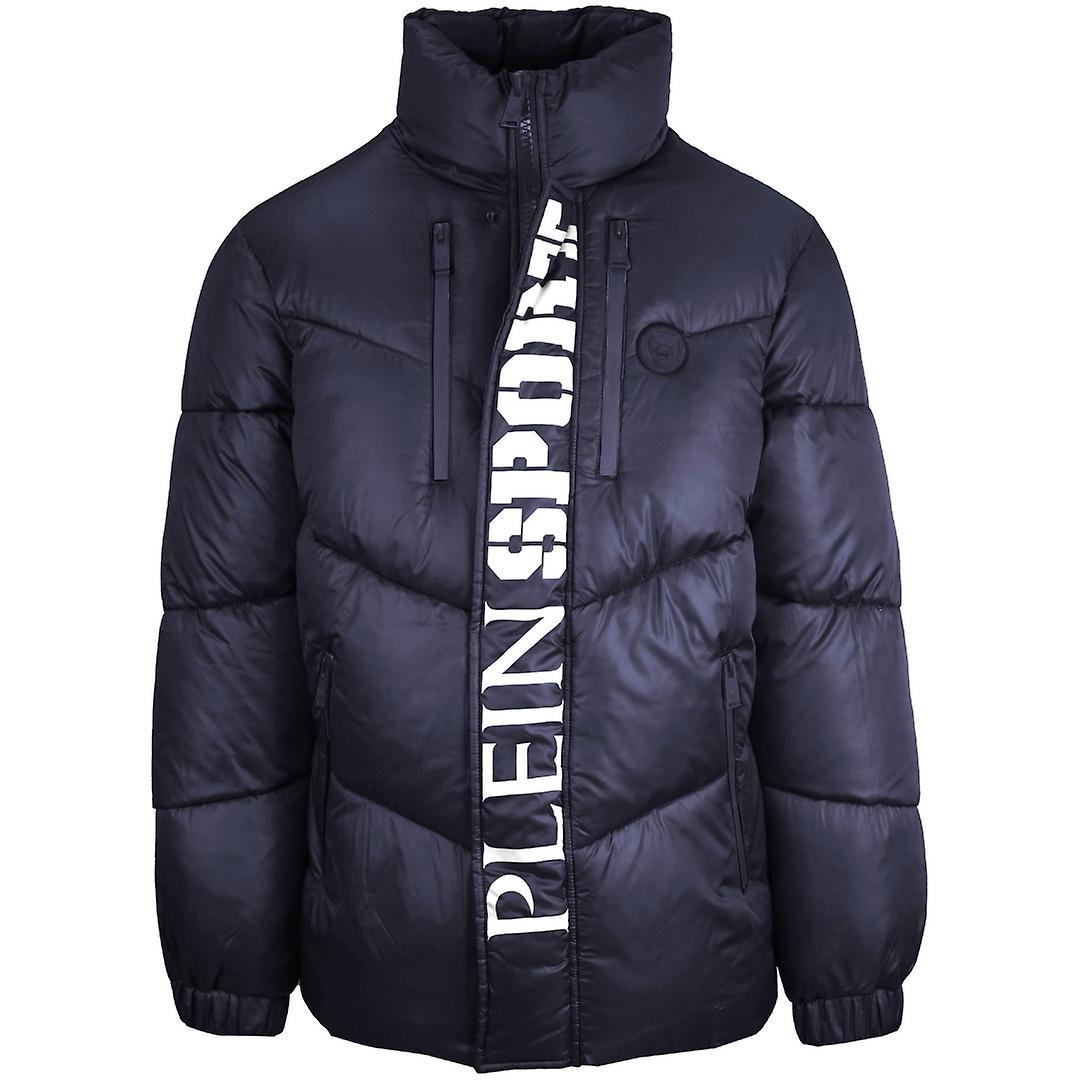 Plein Sport Bold Vertical Logo Shiny Padded Navy Blue Jacket