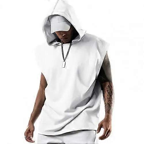 Plus Size Men's Hooded Sleeveless Tank Top Solid Color Summer Fitness Vest