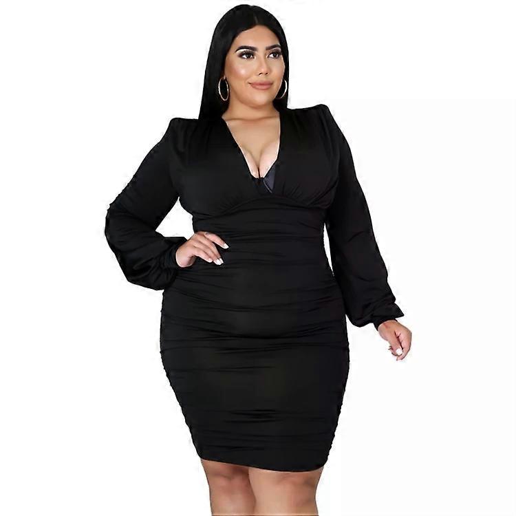 Plus Size Sexy Solid Color Dress-Black,Buttocks Enhancing Design Black,L