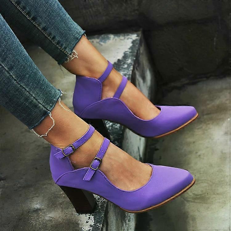 Plus Size Women’s Heels-Double Buckle Design,Purple,Size 39 Purple,39