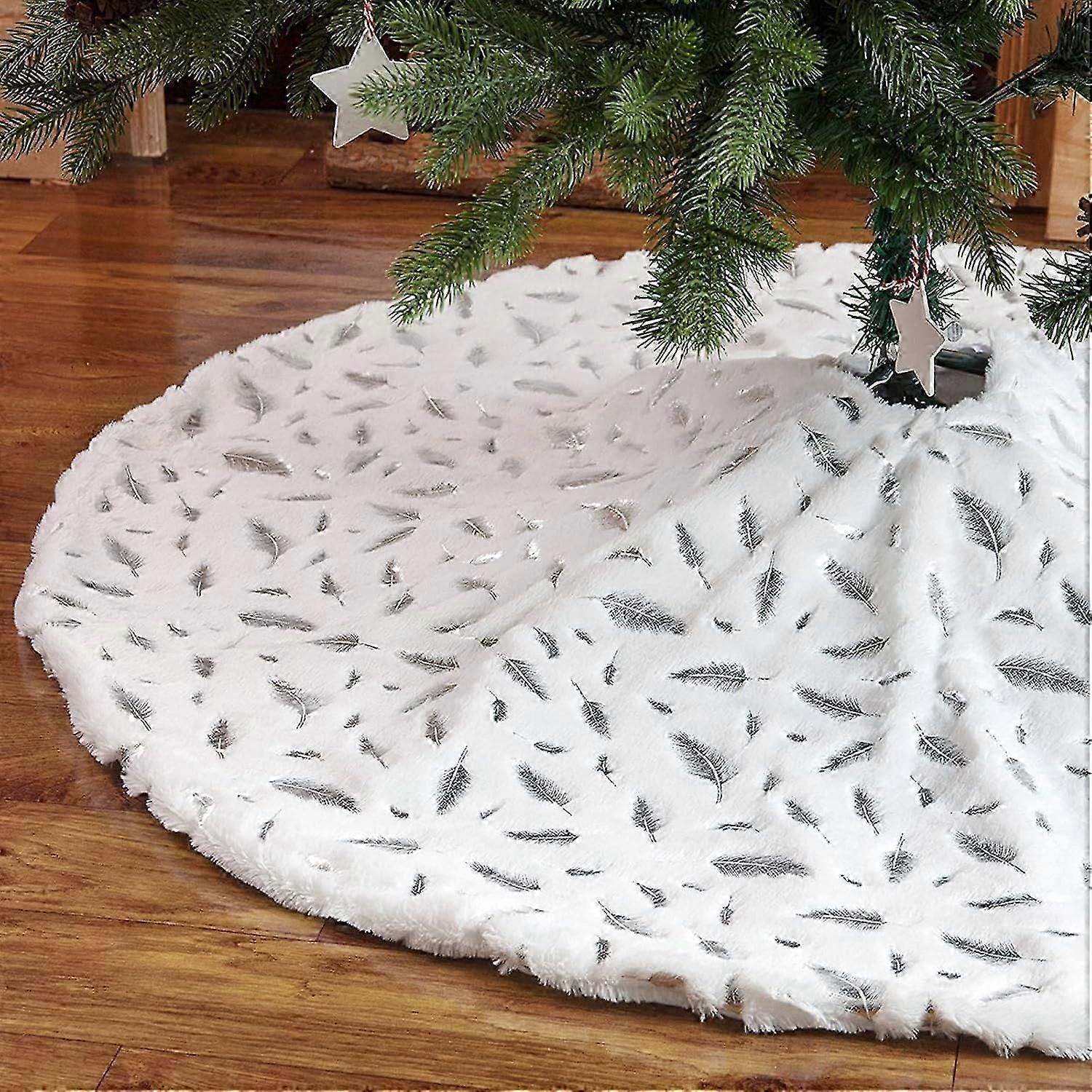 Plush Christmas Tree Skirt with Bronzing Feathers Christmas Tree Skirt Faux Fur Christmas Tree Mat Christmas Tree Foot Cover GrooFoo Christmas Tree Fo