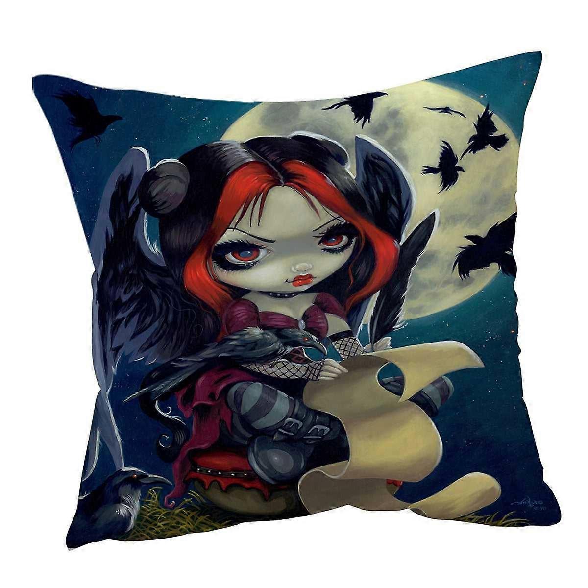 Poe The Raven Gothic Girl with Wings at Night Cushion Cover