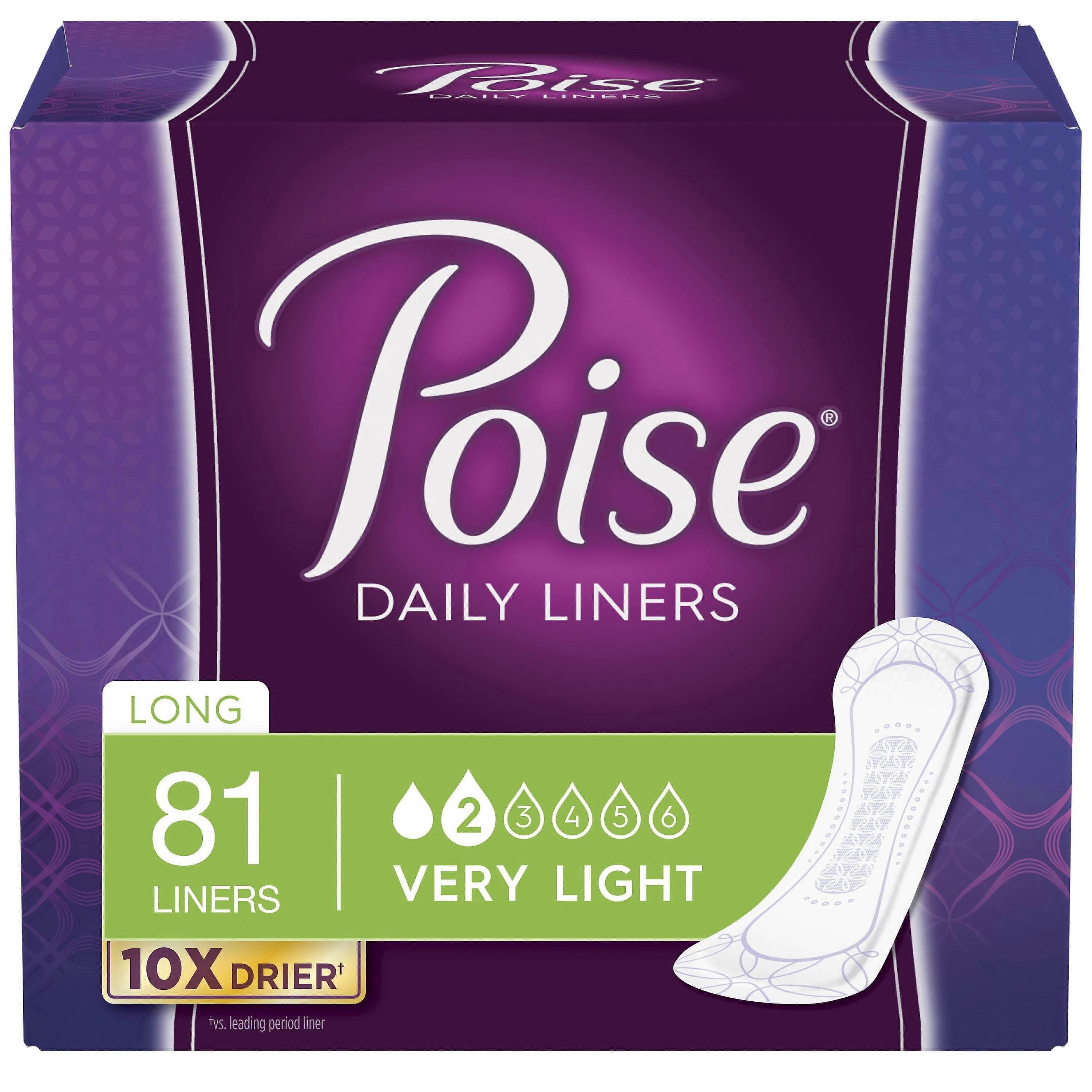 Poise Daily Liners Women's Very Light, Long Postpartum Incontinence Liners, 81 Ea