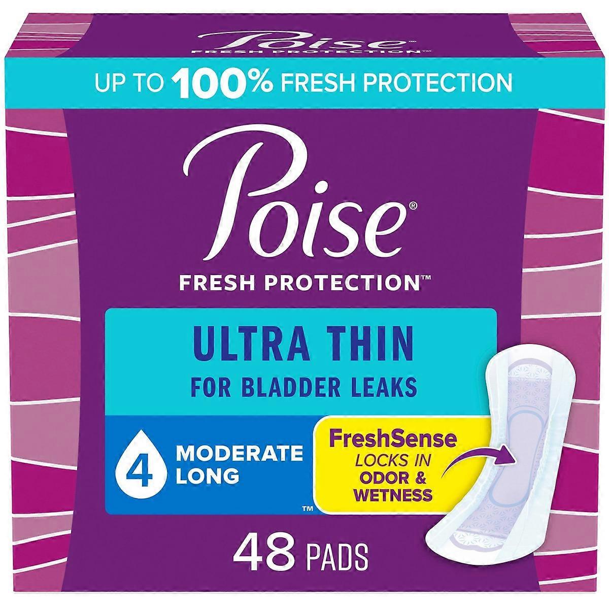 Poise Ultra Thin Postpartum Incontinence Pads For Women, Moderate Absorbency - 4 Drop - Long - 48ct