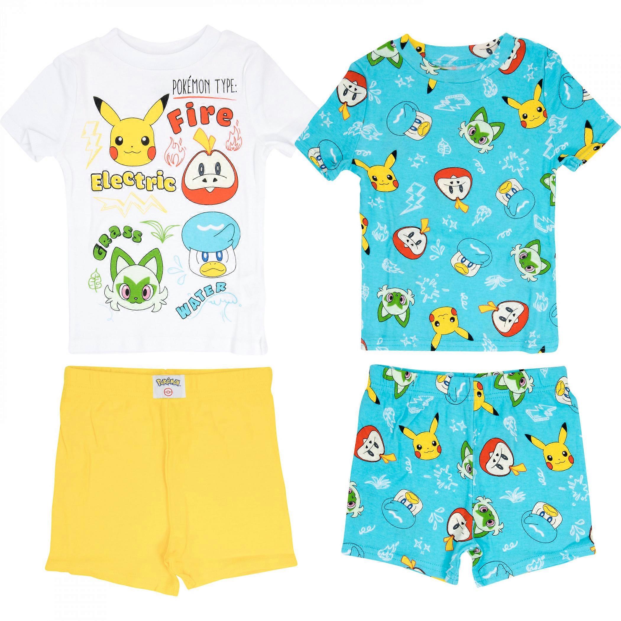 Pokemon Grass Water Fire and Electric Boy's 4-Piece Pajama Set