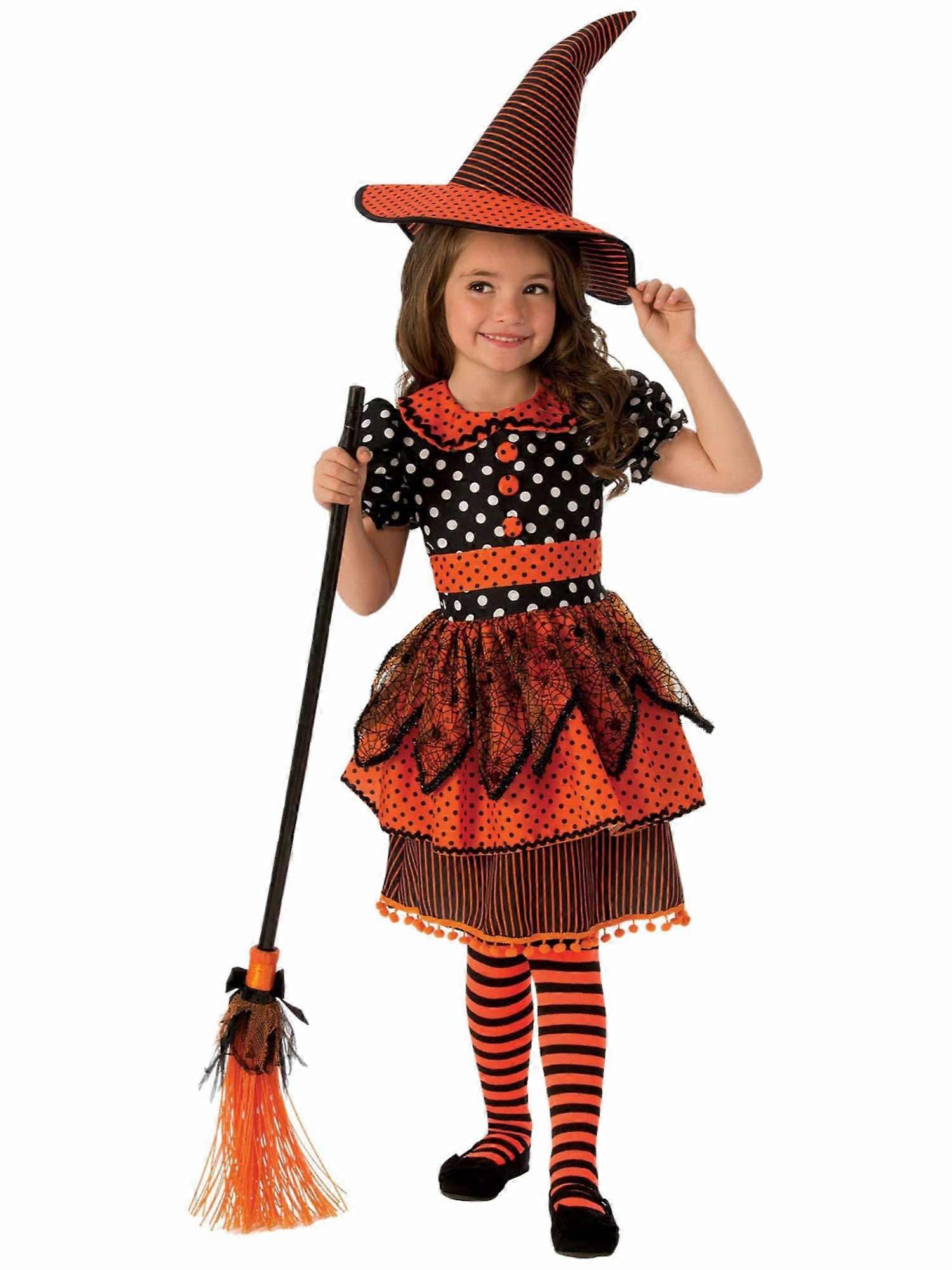 Polka Dot Witch Orange Sorceress Halloween Book Week Child Girls Costume