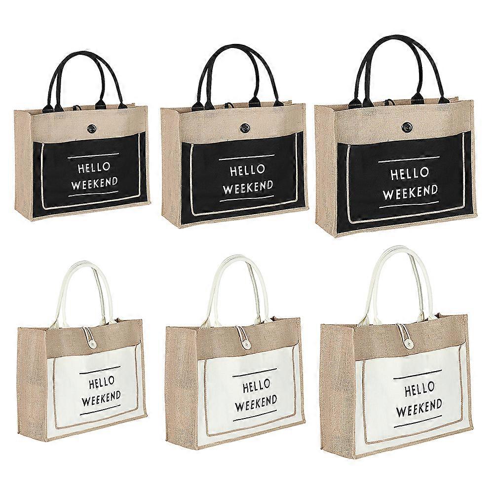 Portable Bag Eco Bag Women Jute Shopping Bag Lady Daily Shoulder Bag Reusable Waterproof Beach Daily Jute Handbag