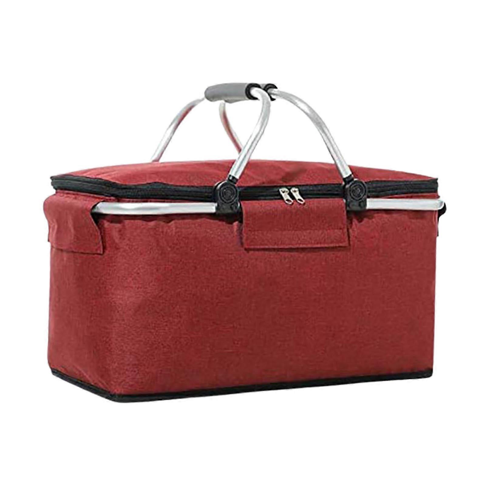 Portable Folding Picnic Basket Shopping Travel Camping Grocery Store Bag Insulated Durable Aluminum Frame Basket Lightweight Cooler