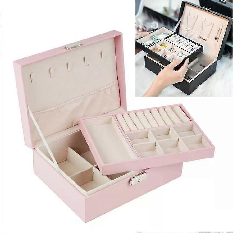 Portable Leather Jewelry Storage Box-Double Layer Pink Organizer Pink,Double Layer