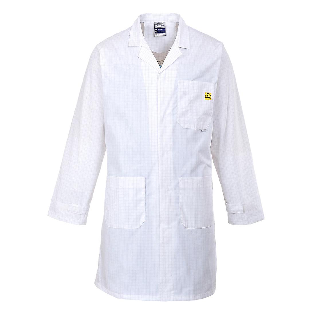 Introducing the Portwest AS10 Anti-Static ESD Coat, a paramount choice for professionals seeking reliable electrostatic resistance in their work environment. This inherently anti-static garment is meticulously designed with both safety and comfort as priorities, ensuring you stay protected without compromising on ease of movement. Its features include a concealed stud front for easy access, two lower patch pockets, and one chest pocket for ample storage, alongside adjustable cuffs to ensure a perfect fit.