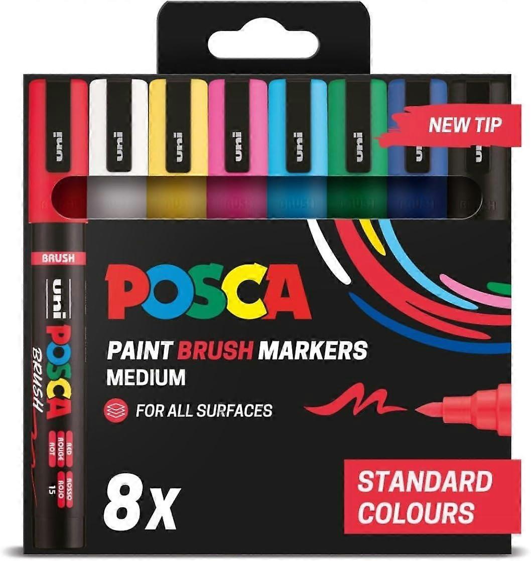 POSCA PC-5BR Brush Marker 8pc Set, Standard Colours